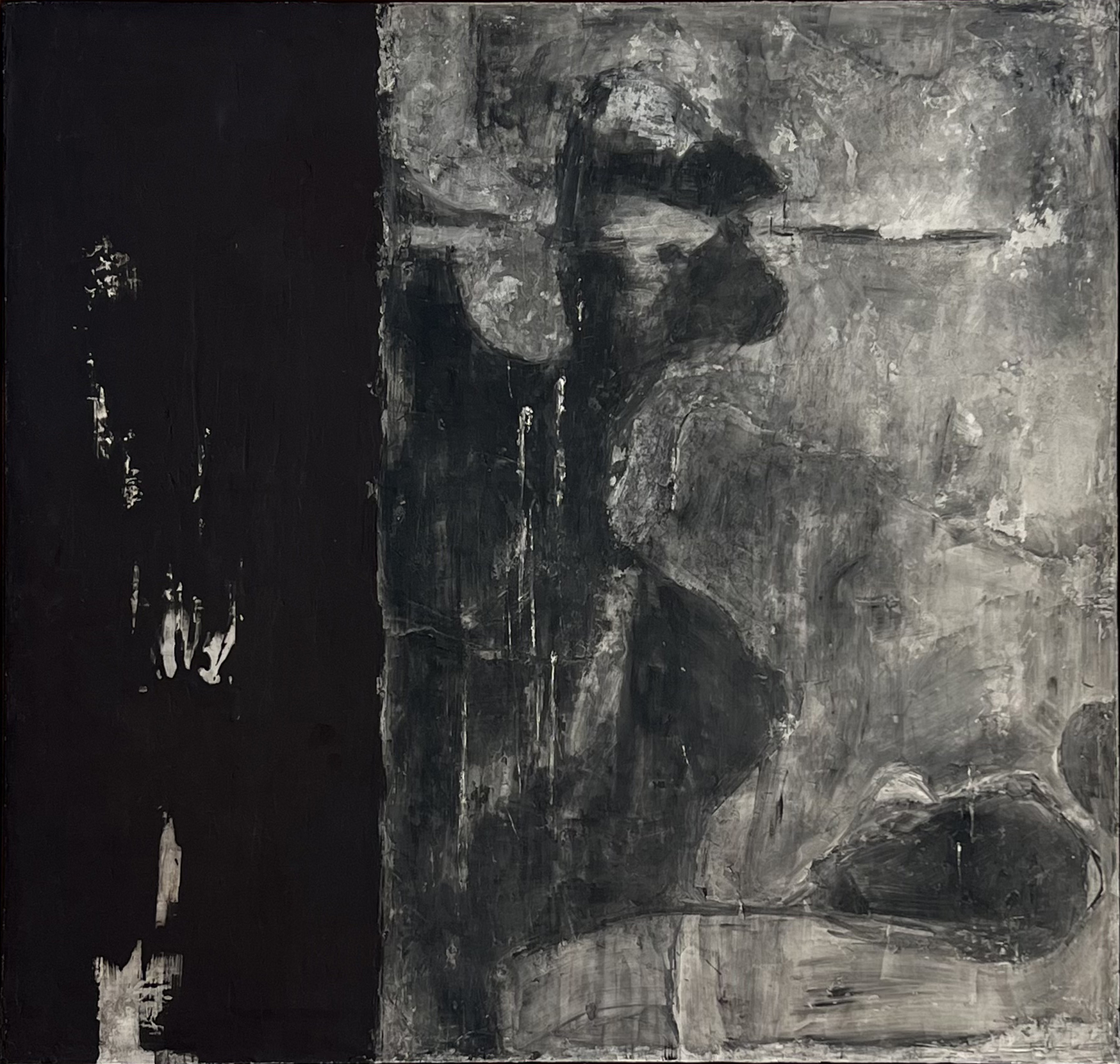 Tinta acrílica e pó de carvão s/ tela