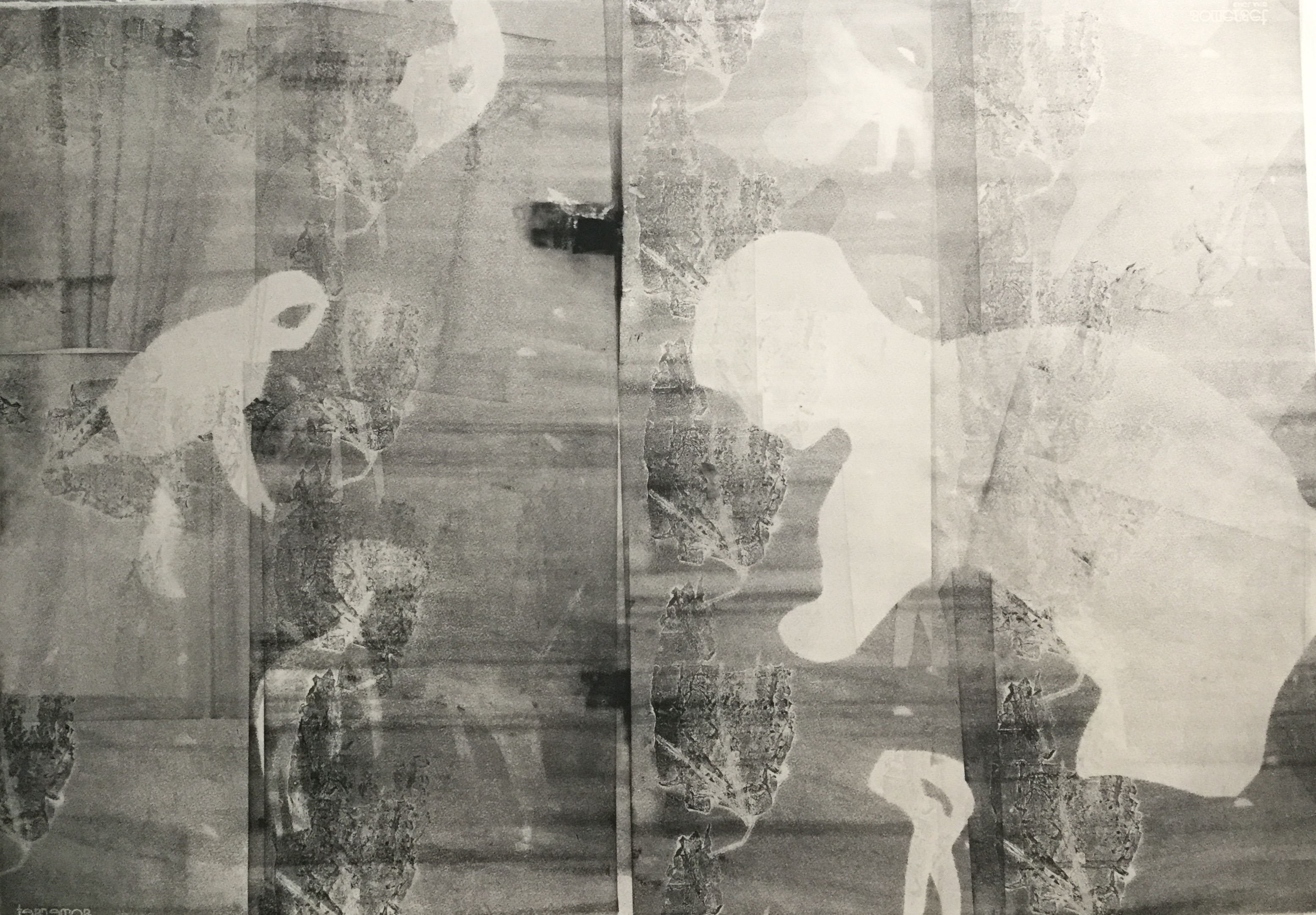 Colagravura c/ impressão a 2 cores s/ papel rosaspina